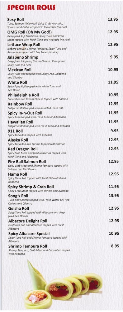 Introducing the menu at Mr. Sushi, a Japanese restaurant located in Valencia, CA, known for its fresh sushi rolls and flavorful appetizers. Special rolls like the 007 Roll and Alaska Roll showcase unique flavor combinations and generous portions. Appetizers like Agedashi Tofu and Chicken Teriyaki set the stage for a delightful meal. The variety of salads and soups, including the popular Sashimi Salad and Spicy Tuna Salad, offer refreshing options. Customers praise the friendly service and relaxing atmosphere, with one reviewer noting the superb quality of fish and attentive staff. With positive reviews highlighting the generous portions and fresh ingredients, Mr. Sushi stands out as a top choice for sushi lovers in Santa Clarita.